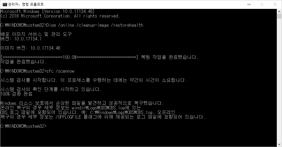 방법 3: SFC 및 DISM으로 시스템 파일 스캔